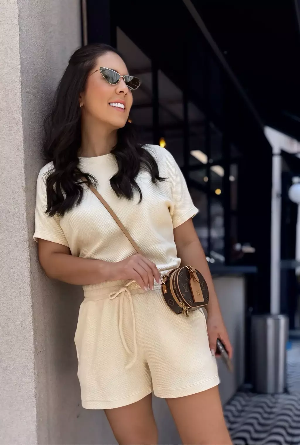 A blusa apresenta modelagem moderna e elegante, com caimento impecável que valoriza a silhueta, enquanto o short oferece liberdade de movimento com estilo contemporâneo. A combinação das cores marrom com beringela traz uma harmonia sóbria e refinada, ideal para composições urbanas e versáteis.